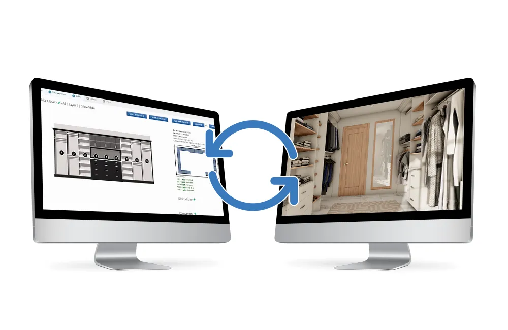Export your ClosetPro Software projects into VORTEK Spaces and experience real-time syncing for faster design iteration. Every change you make in ClosetPro Software can be reflected in VORTEK Spaces, keeping your designs accurate and up-to-date, eliminating the need to restart the settings and 3D rendering from scratch.